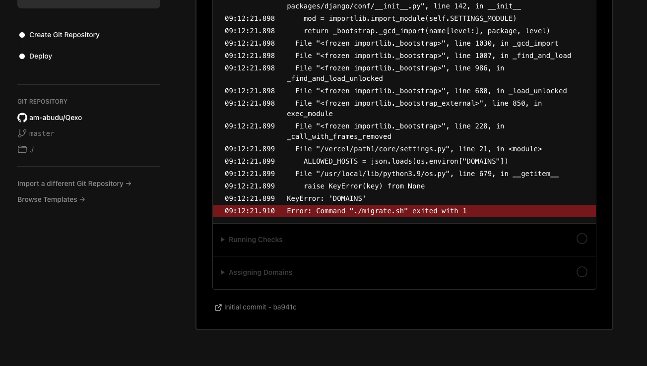 第一次部署会出现错误,因为我们还没有设置环境变量