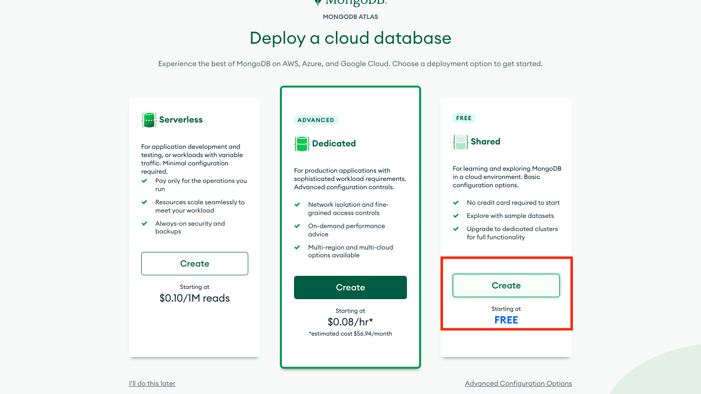 MongoDB是有免费套餐的,所以直接注册