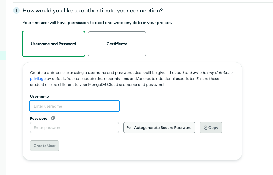 点击创建,然后要你设置连接数据库用的用户名和密码