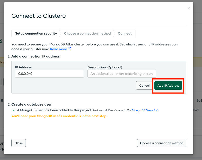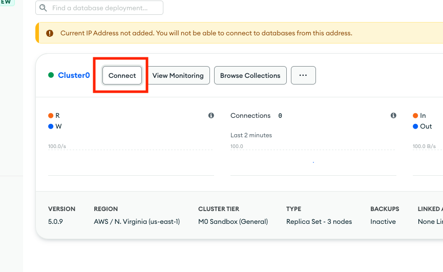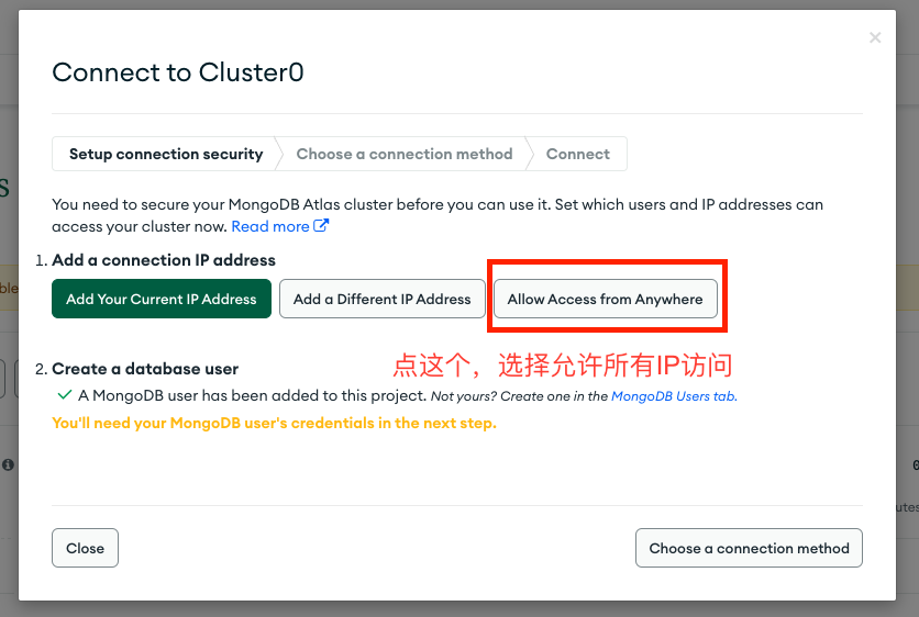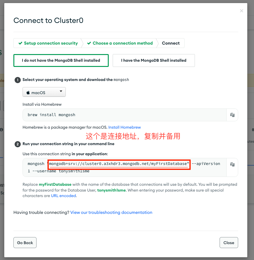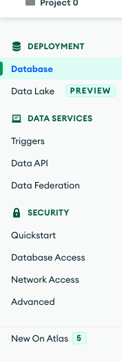设置好之后到左侧栏的Database,记住你数据库的名字,我的就直接默认Cluster0