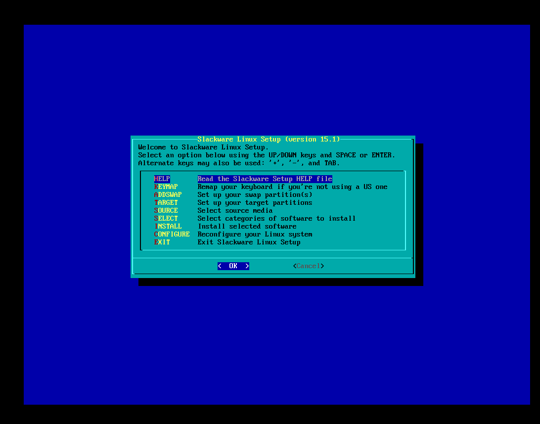 下载好 Slackware -current 的 Live CD ISO ,并使用你喜欢的方式刻录到U盘(例如使用Balena Etcher,或者使用Ventoy)