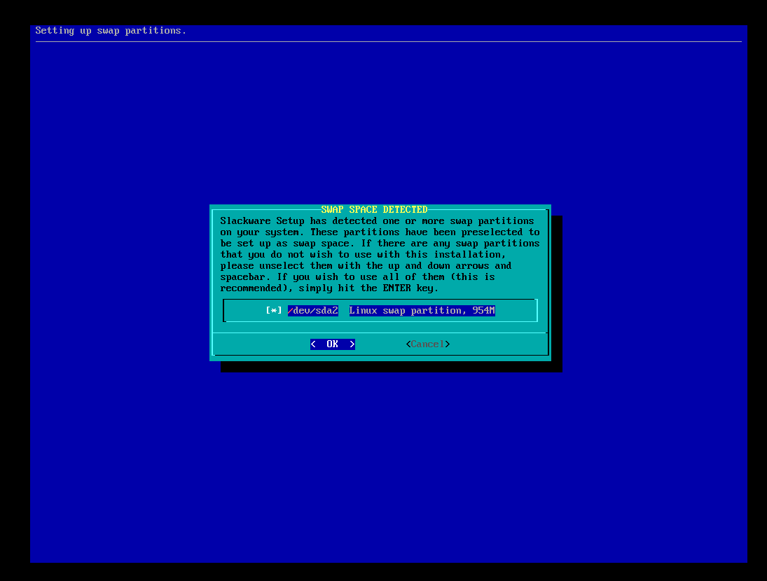 安装向导将会按照如下列表的步骤依次进行,我们将从设置交换分区开始。