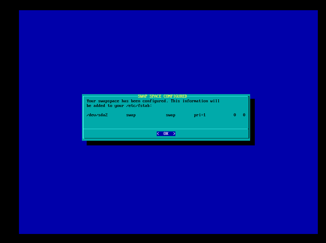 检查完毕后将自动配置交换分区,并自动写入到系统的 /etc/fstab 中