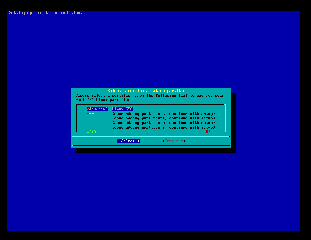 在确认硬盘分区完毕后,输入 setup 开始运行 Slackware Linux 的安装向导。