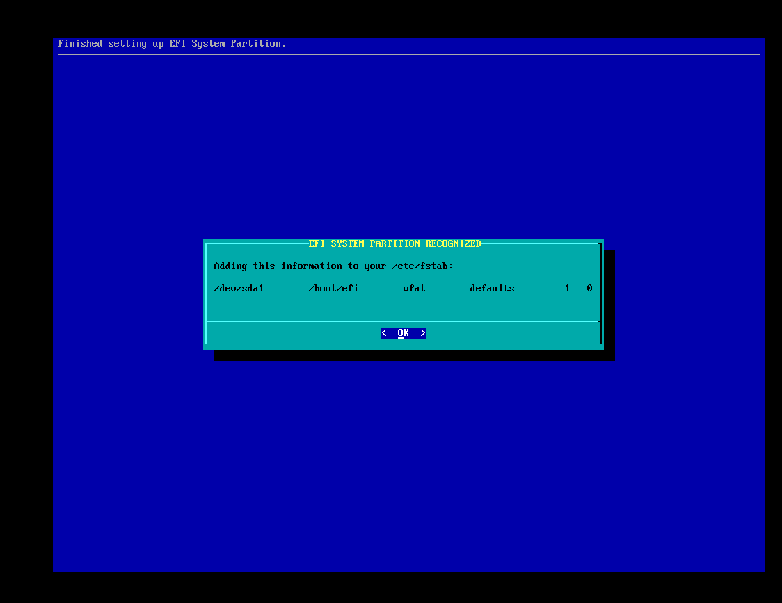 如果你之前已经在硬盘中另外装了其他使用UEFI引导的系统(比如Windows)请务必不要把引导分区格式化,否则会导致原来的系统无法进入!
