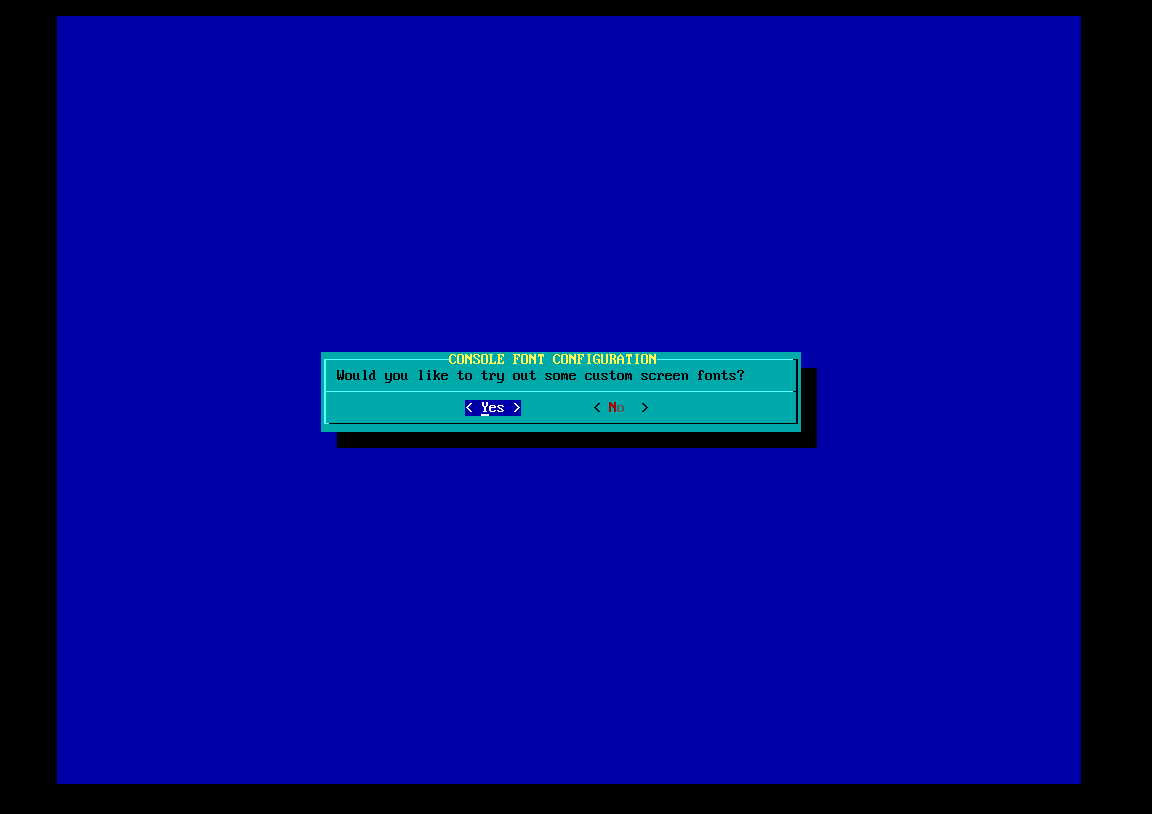 这一步骤可以设置终端的字体个性化设置,我这里不做自定义,选择”No”